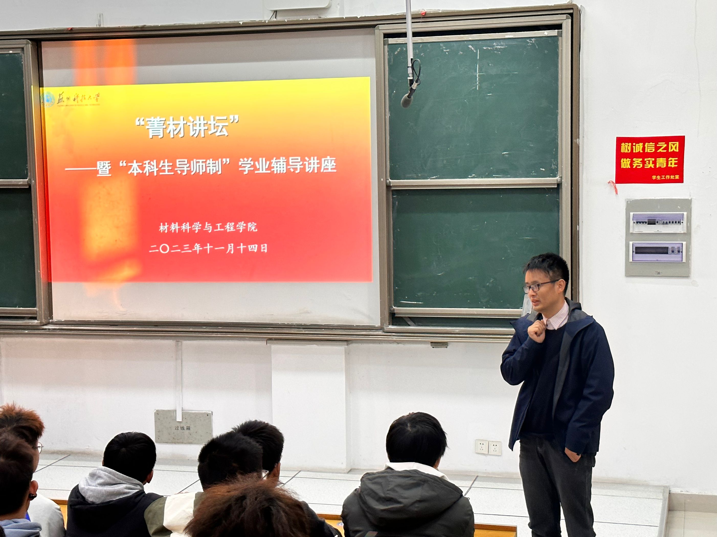 11月14日,3044永利开展“菁材讲坛”暨“本科生导师制”学业辅导讲座。本期讲座主讲人为学院新能源教师党支部、本科生导师、副教授胡俊蝶老师。公司党委副书记兼副经理李永丹、副经理杨晓刚及新生班主任们出席本次活动。