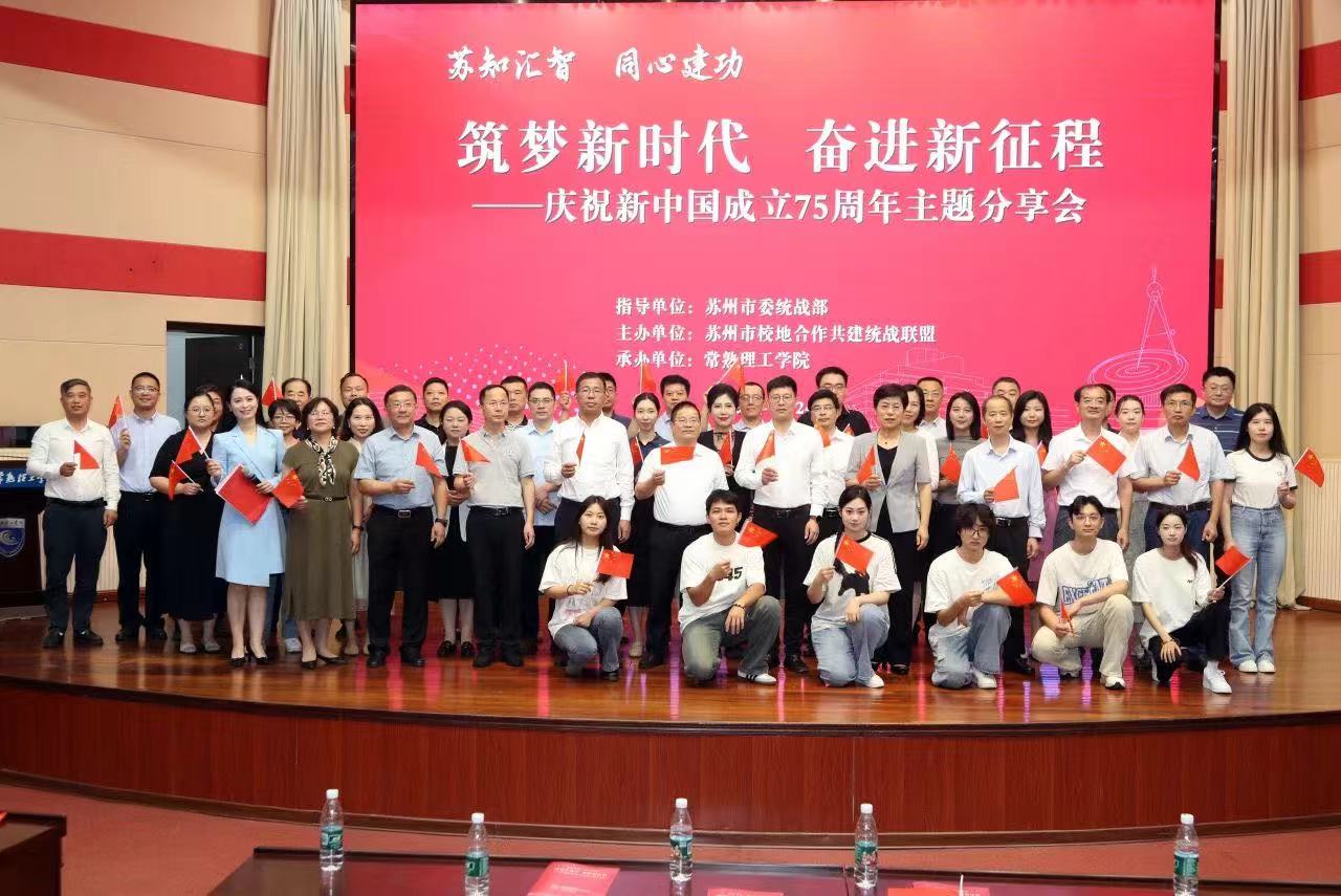 9月24日下午,“筑梦新时代 奋进新征程”在苏州高公司党外知识分子庆祝新中国成立75周年主题分享会在常熟理工学院召开。此次活动由苏州市委统战部指导,苏州市校地合作共建统战联盟轮值高校常熟理工学院承办。