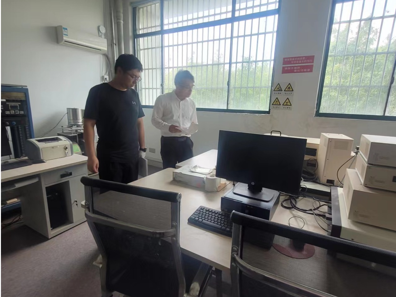 在院士楼和逸夫楼内,安全检查小组深入每一间实验室,认真核查实验室运转状况,详细问询实验室负责人有关安全管理制度和应急预案的落实情况;安全检查小组也对每间实验室的安全隐患进行了仔细排查,发现问题直接督办,要求相关责任人立即整改。