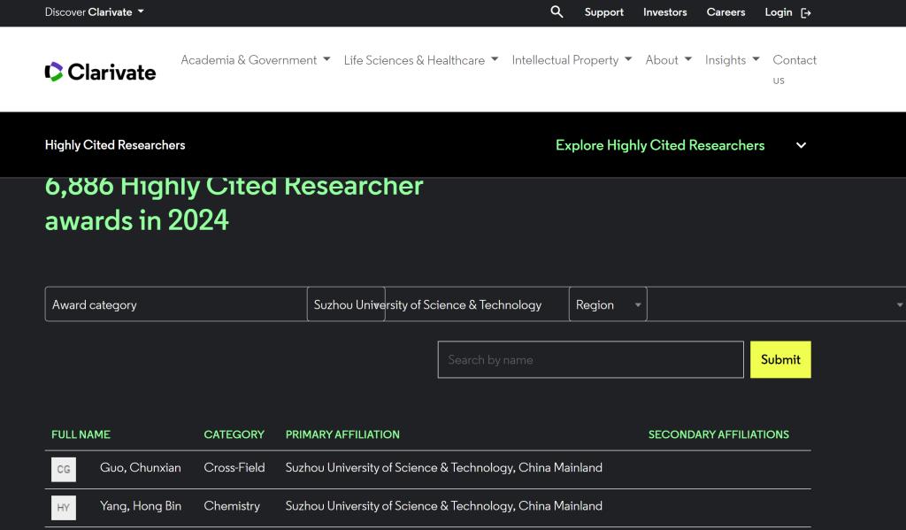 科睿唯安“全球高被引科学家名单”每年评选一次,旨在表彰对所在学科做出重大贡献且具有全球影响力的自然科学家和社会科学家。2024年榜单根据2013年至2023年这11年期间所发表的高被引论文数量遴选得出,遴选方法基于科睿唯安科学信息研究所文献计量专家对SCIE和SSCI收录期刊中高被引论文数据进行严格评估和整理。