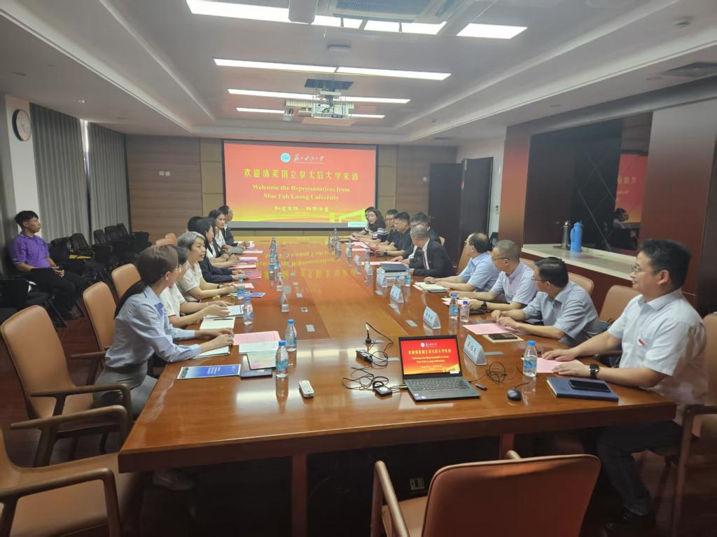 8月21日下午,泰国皇太后大学代表团一行7人访问公司。公司副董事长李勇及相关人员接待并参与会谈。