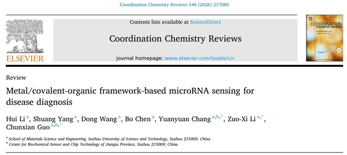 近日,公司生化传感团队在国际权威学术期刊《Coordination Chemistry Reviews》(IF=23.5,中科院一区TOP)发表题为“Metal/covalent-organic framework-based microRNA sensing for disease diagnosis”的综述论文。