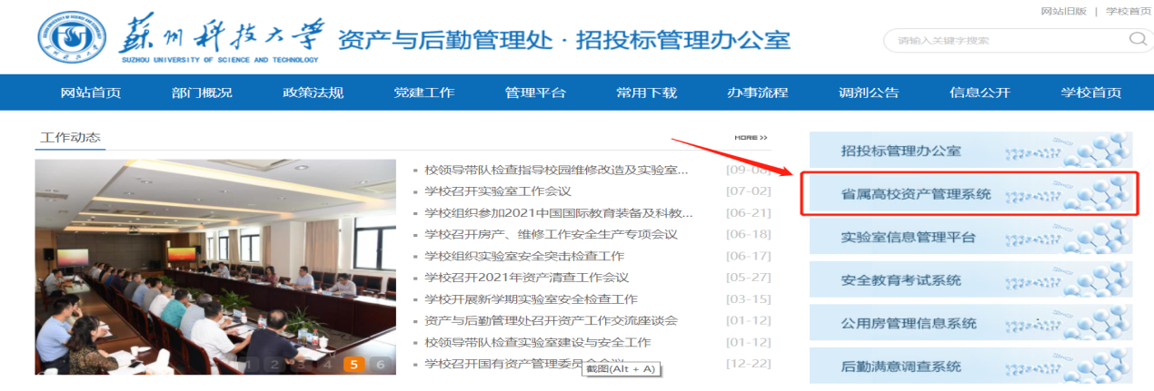 1. 进入校园网资产与后勤管理处,单击省属高校资产管理系统;