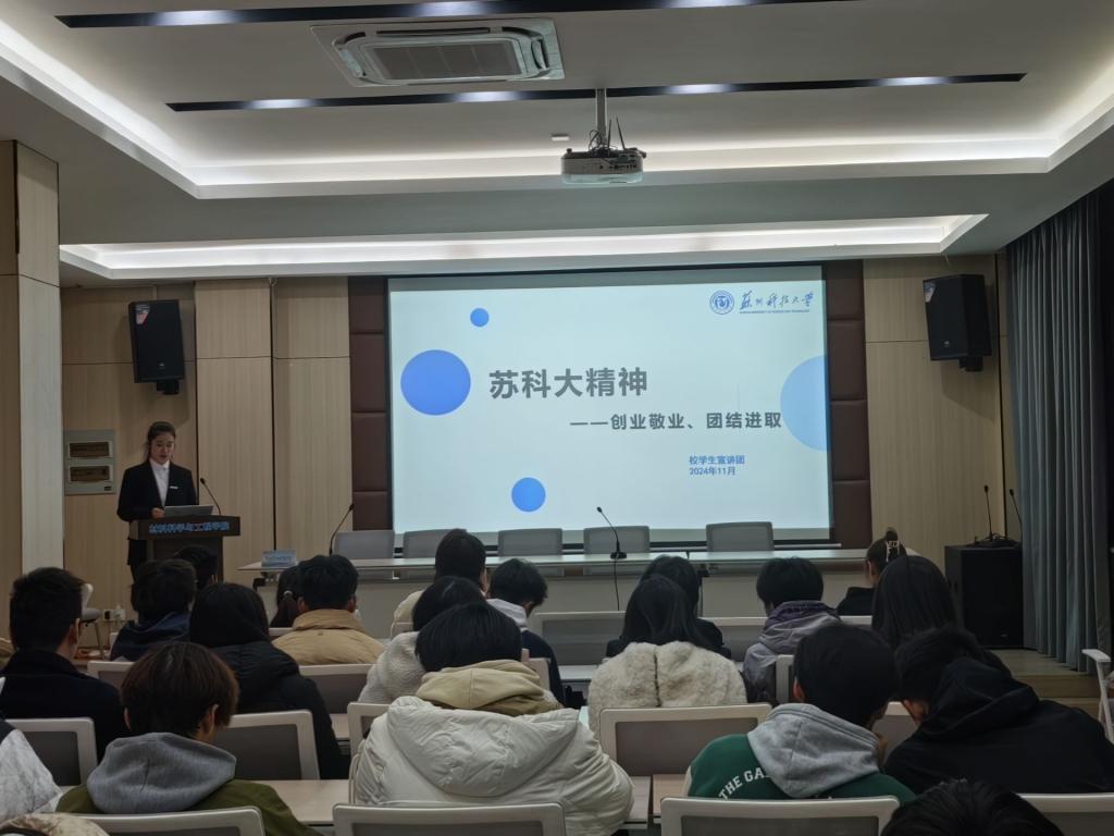 杨浩丹同学以饱满的热情,引领大家深入探索了苏科大精神中“创业敬业”的精髓所在。她不仅从理论高度剖析了这一精神如何激励着一代又一代学子勇于开拓、不懈奋斗,还通过分享一系列员工的成功创业案例,让同学们直观感受到“创业敬业”不仅是口号,更是推动个人成长与社会进步的不竭动力。杨浩丹的讲解,如同一盏明灯,照亮了同学们心中对于未来职业道路的探索与憧憬。