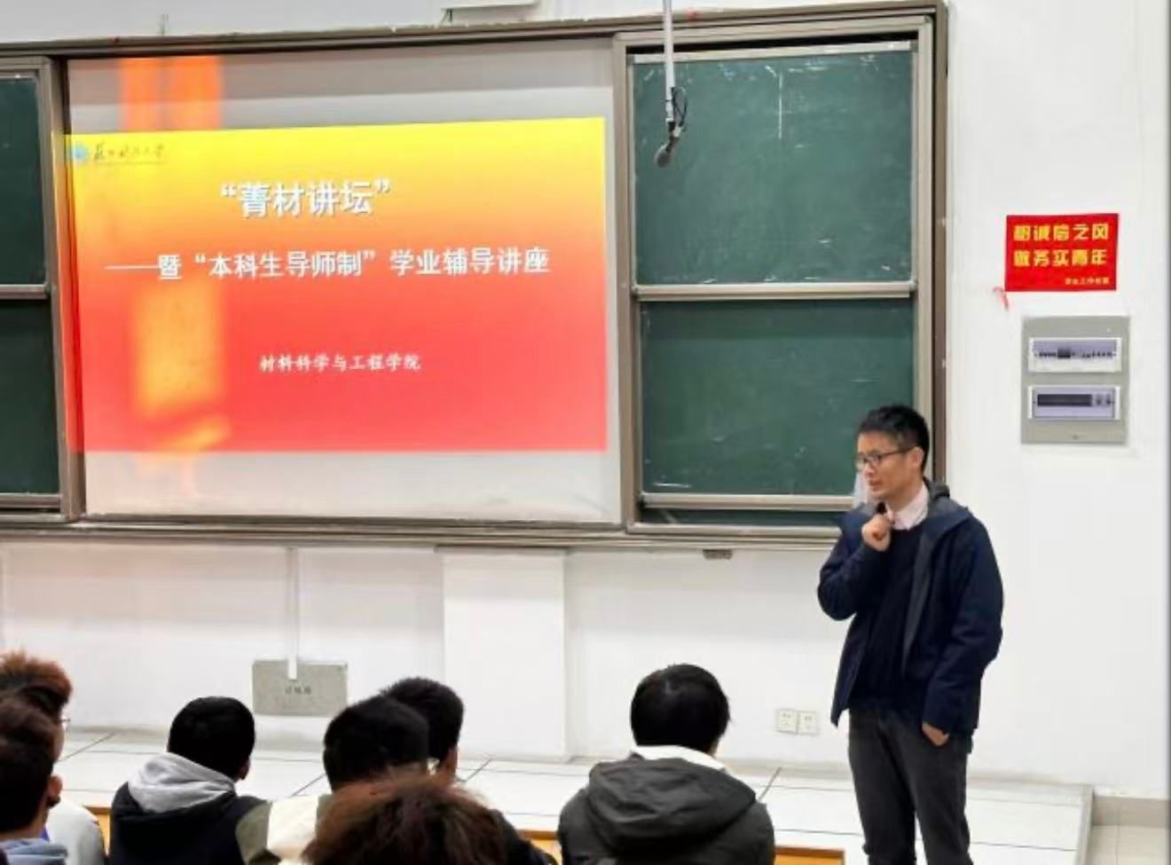 11月14日,3044永利开展“菁材讲坛”暨“本科生导师制”学业辅导讲座。本期讲座主讲人为学院新能源教师党支部、本科生导师、副教授胡俊蝶老师。公司党委副书记兼副经理李永丹、副经理杨晓刚及新生班主任们出席本次活动。