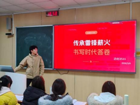 功能材料2511班以“传承雷锋薪火,书写时代答卷”为主线,大家围绕“青春何为、担当何在”展开交流,从身边小事谈起,在思想碰撞中加深对雷锋精神的理解。团支书在总结中鼓励大家在日常学习生活中传递善意、展现担当,用实际行动书写属于新时代青年的青春答卷。