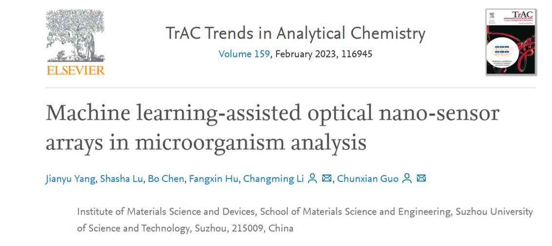 近日,公司3044永利李长明教授、郭春显教授团队的最新研究成果发表在分析化学领域知名期刊《Trends in Analytical Chemistry》(IF=14.908)上,相关成果题目为《Machine learning-assisted optical nano-sensor arrays in microorganism analysis》。杨健宇博士为第一作者,李长明教授、郭春显教授为通讯作者,公司为第一通讯单位。