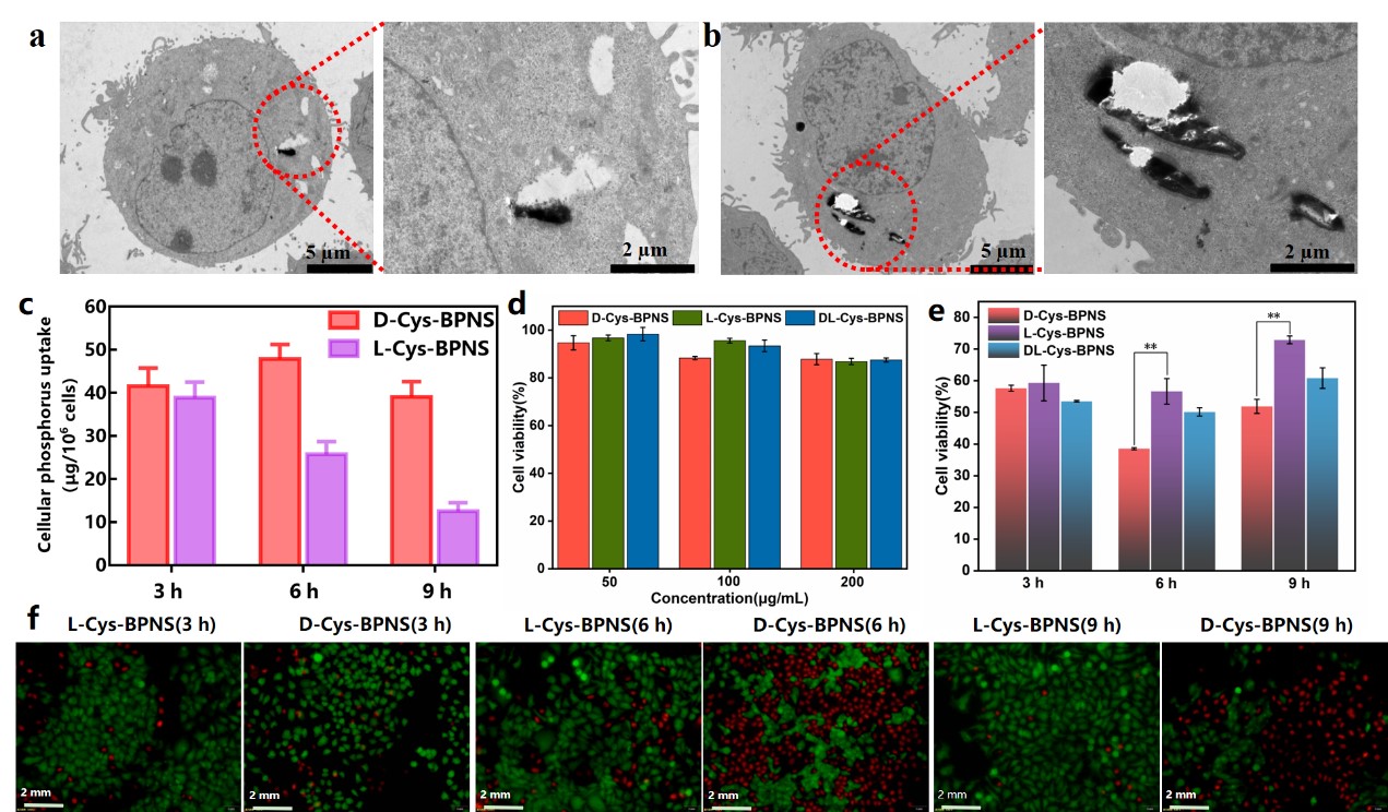 图6 手性氨基酸功能化黑磷细胞手性依赖的细胞摄取、胞内代谢及抗肿瘤效应的评价