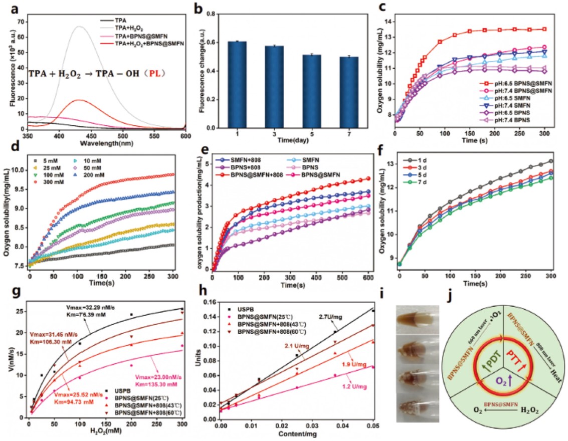 图3 RGD-BPNS@SMFN模拟酶活性的评价与自协同抗肿瘤机制的分析
