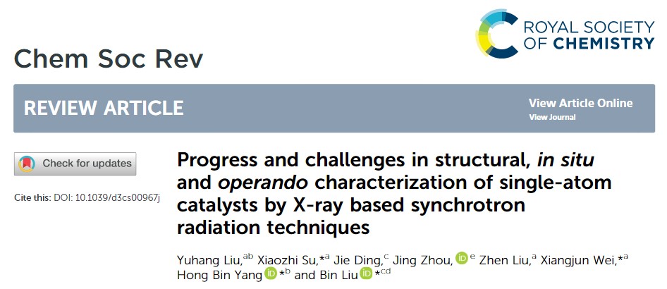 近日,公司与香港城市大学等单位合作,在国际知名期刊Chemical Society Reviews上发表题为“Progress and challenges in structural, in situ and operando characterization of single-atom catalysts by X-ray based synchrotron radiation techniques”的综述文章,公司为通讯单位,杨鸿斌教授为通讯作者,公司指导的研究生刘宇航为第一作者。