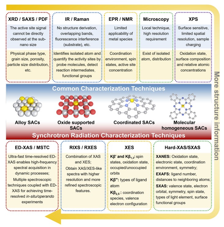 研究主要讨论了使用X射线同步辐射技术对单原子催化剂(SACs)进行结构、原位和原位表征的进展和挑战,系统地总结了同步辐射技术在SACs表征方面的研究进展,以及同步辐射技术在SACs领域的原位/操作条件下的应用。