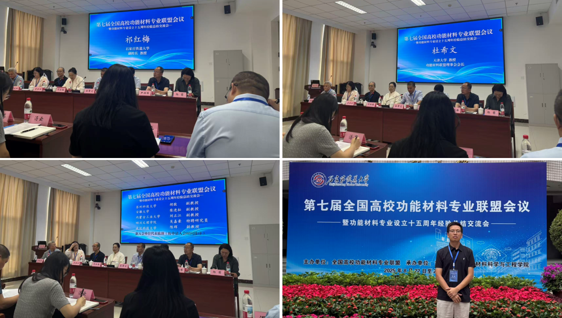 近日3044永利功能材料专业副主任胡敬代表专业参加第七届全国高校功能材料专业联盟会议,并作为新加盟理事单位代表向联盟理事会及成员介绍学校和专业等相关情况。本次会议由全国高校功能材料专业联盟主办,石家庄铁道大学承办,天津大学、大连理工大学、华南理工大学等20所高校功能材料专业相关学院领导、专业负责人和专家参加会议。