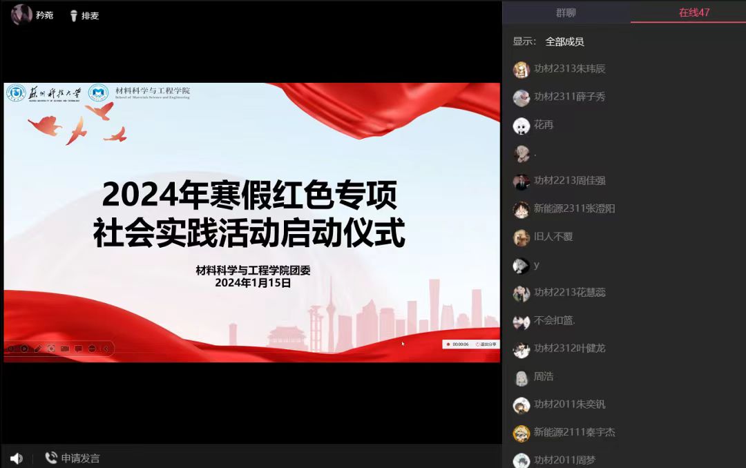 启动仪式上,陶许怡围绕“传承红色基因,践行青春使命”主题向同学阐述了本次寒假社会实践活动主要内容,她强调,行动是青年最有效的磨砺,同学们要以此次红色专项实践为契机,学习红色文化,加强服务意识,重走党建引领下的红色足迹、追溯红色记忆、访谈红色人物、挖掘红色故事、体悟红色文化,感受党的红色精神伟力。