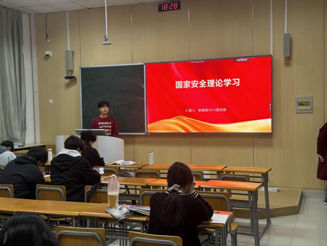 团支书从国家安全的概念、内涵、重要性等方面入手,详细讲解了国家安全理论知识。重点解读了政治安全、国土安全、军事安全、经济安全、文化安全等16个重点领域的安全内容。此外,团支书选取了近年来发生的一些典型的危害国家安全的案例,如间谍窃密案件、网络攻击事件、生物安全事件等,组织团员们进行分组讨论。通过案例分析,让团员们更加直观地认识到国家安全与每个人息息相关,增强了团员们维护国家安全的警惕性。
