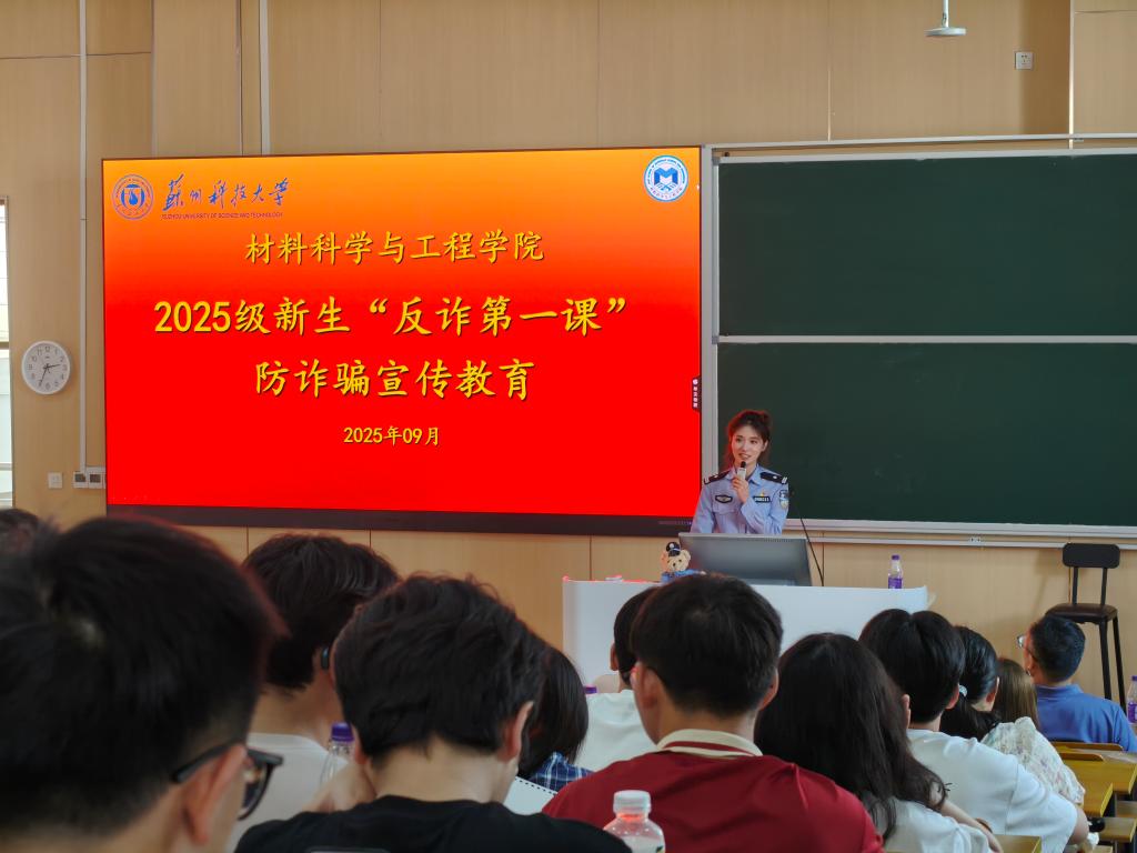 反诈教育部分内容扎实、警醒人心。苏州市公安局吴中分局卢警官针对老员工群体认知盲区,结合高校高发的电信网络诈骗案例,打破部分同学“我不可能被骗”的侥幸心理,明确指出“诈骗手法不断翻新,任何人都可能成为受害者”。卢警官还向大家传授了实用的防诈技巧,提醒同学们注意保护个人信息,做到不轻信、不转账、不泄露,遇到可疑情况第一时间联系老师或报警求助。
