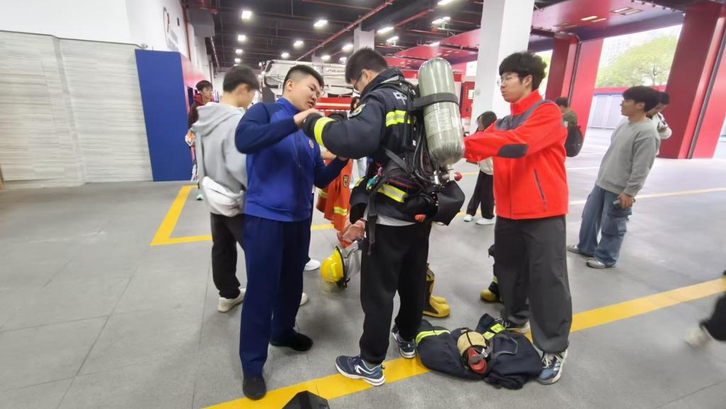 活动中,消防员带领同学们参观了消防车辆、高压水枪、破拆工具等专业救援装备,通过实物讲解与互动体验,让大家直观了解器材功能和使用。同学们还参观了消防员营区和荣誉室,在消防战斗服穿戴环节,大家深刻体会到了消防员工作的艰辛,并对消防员们产生了由衷的敬意。在消防安全座谈会上,消防员结合高校实际,通过真实案例重点讲解实验室、宿舍的防火要点及应急逃生技巧,现场互动积极,员工们纷纷表示收获颇丰。