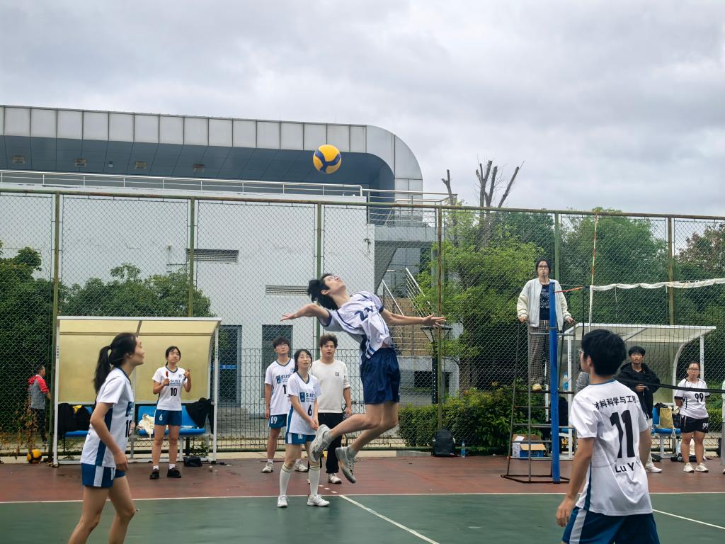 排球赛场上,队员们发球有力、配合默契,扣杀与拦网技术娴熟。比赛过程中,选手们相互鼓励、顽强拼搏,多次成功救起险球,展现出良好的心理素质和团队凝聚力。
