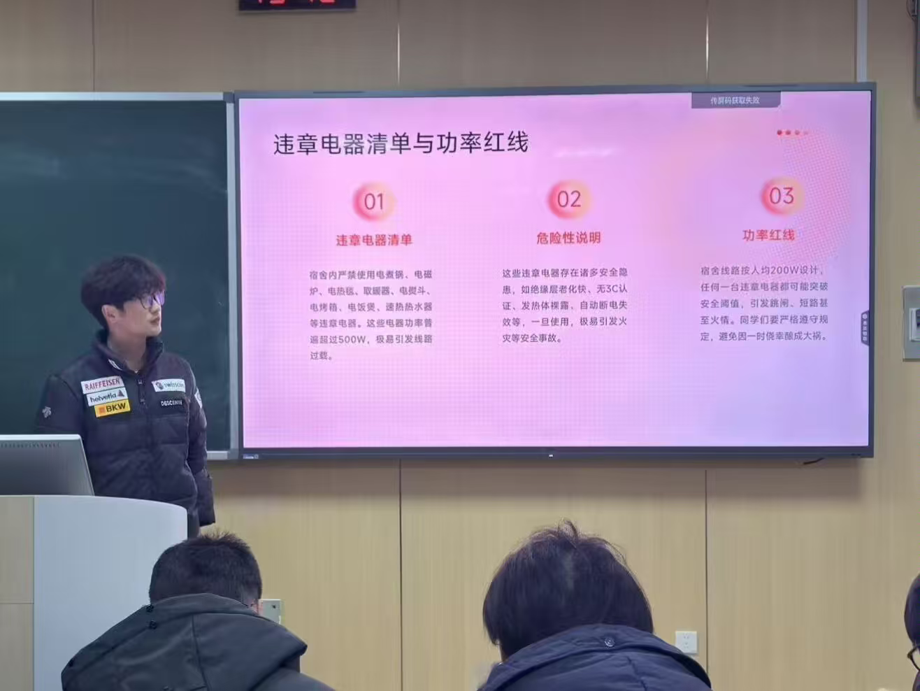 公司坚持教育引导与行为管理相结合。各班级组织召开了“宿舍安全记心间,平安校园共守护”主题班会,结合近期高校案例与《员工手册》中关于宿舍安全管理的相关规章制度,深入讲解消防安全、用电安全知识。班会通过案例分析、图片展示、互动讨论等形式,使员工深刻认识到安全无小事,自觉承诺遵守宿舍管理规定,主动参与到安全环境的维护中来。此次系列班会有效提升了员工的安全防范意识和自主管理能力。