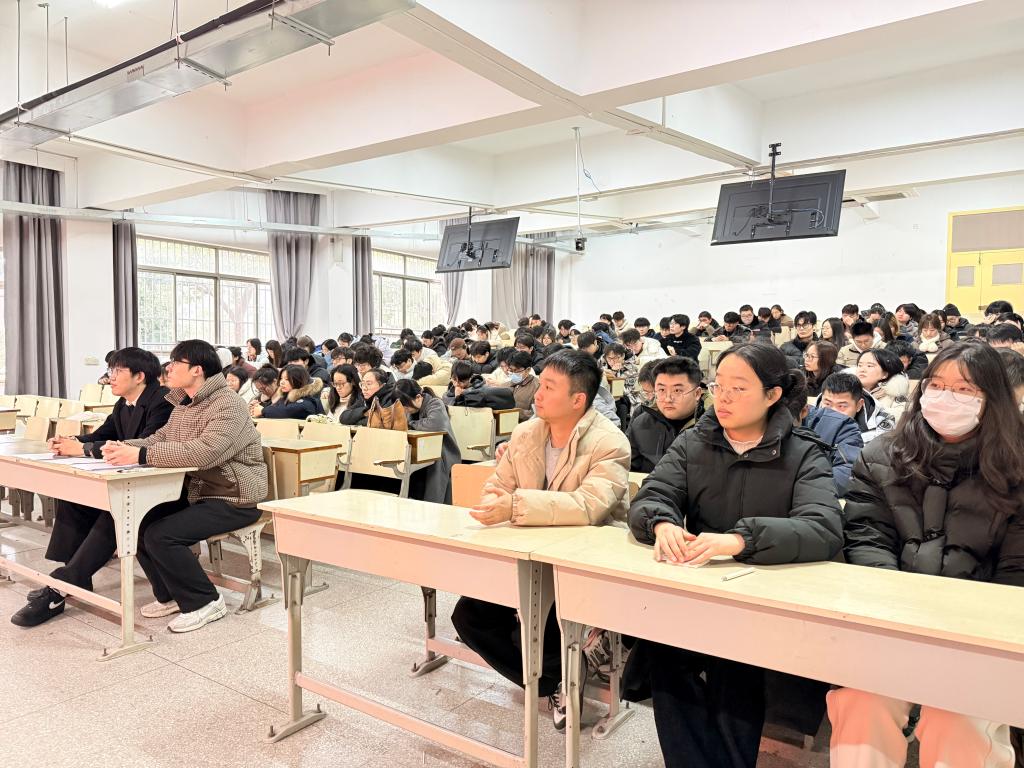 辅导员钟演介绍了寒假留校的整体安排与管理制度,强调留校期间信息报备、日常联系与纪律要求的重要性,提醒同学们保持通讯畅通,积极配合学院开展的动态管理工作。针对近期高发的电信网络诈骗案件,钟老师结合真实案例,提醒大家务必保持警惕,筑牢个人财产安全的防火墙。