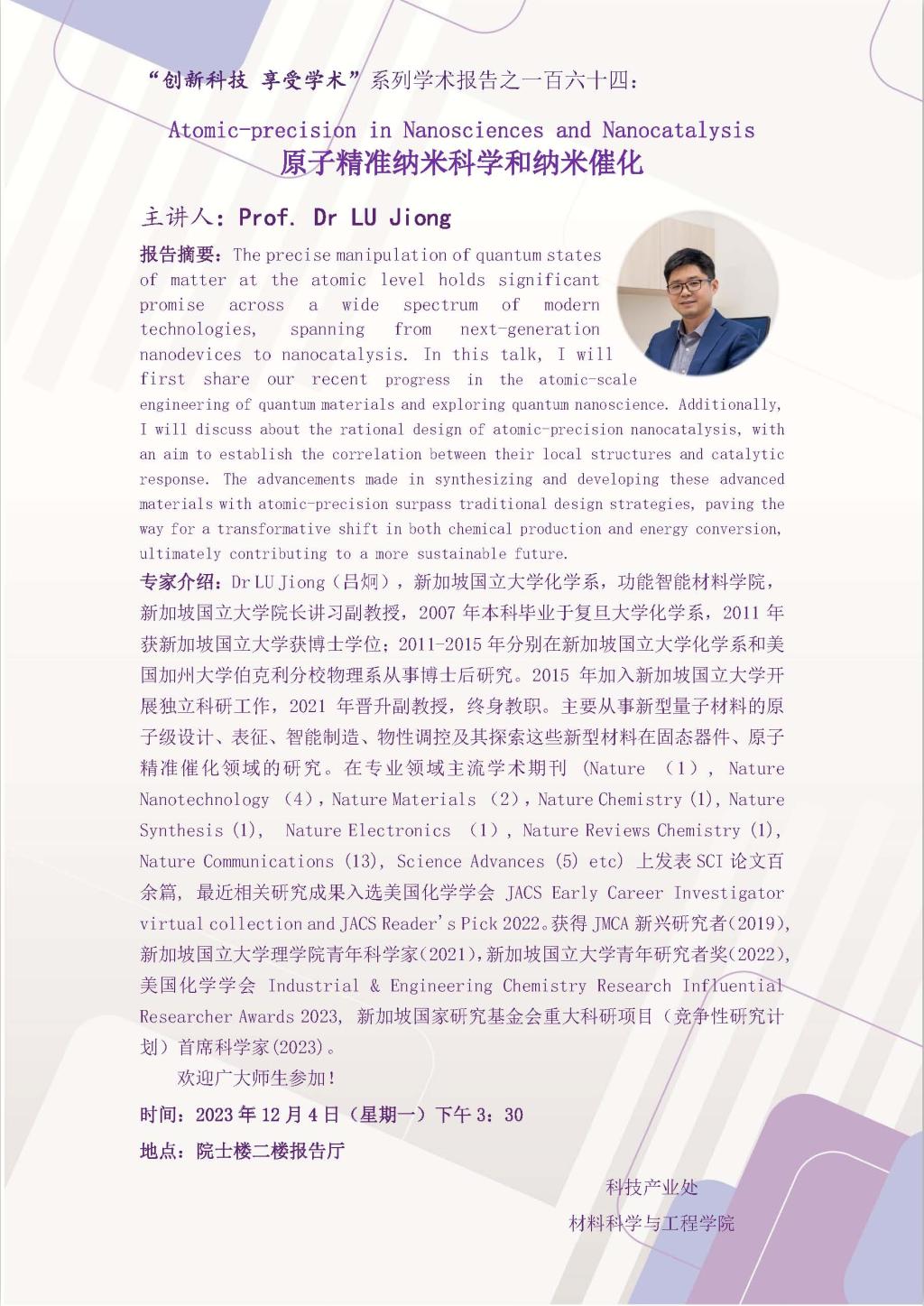 材料学术沙龙四十四:原子精准纳米科学和纳米催化