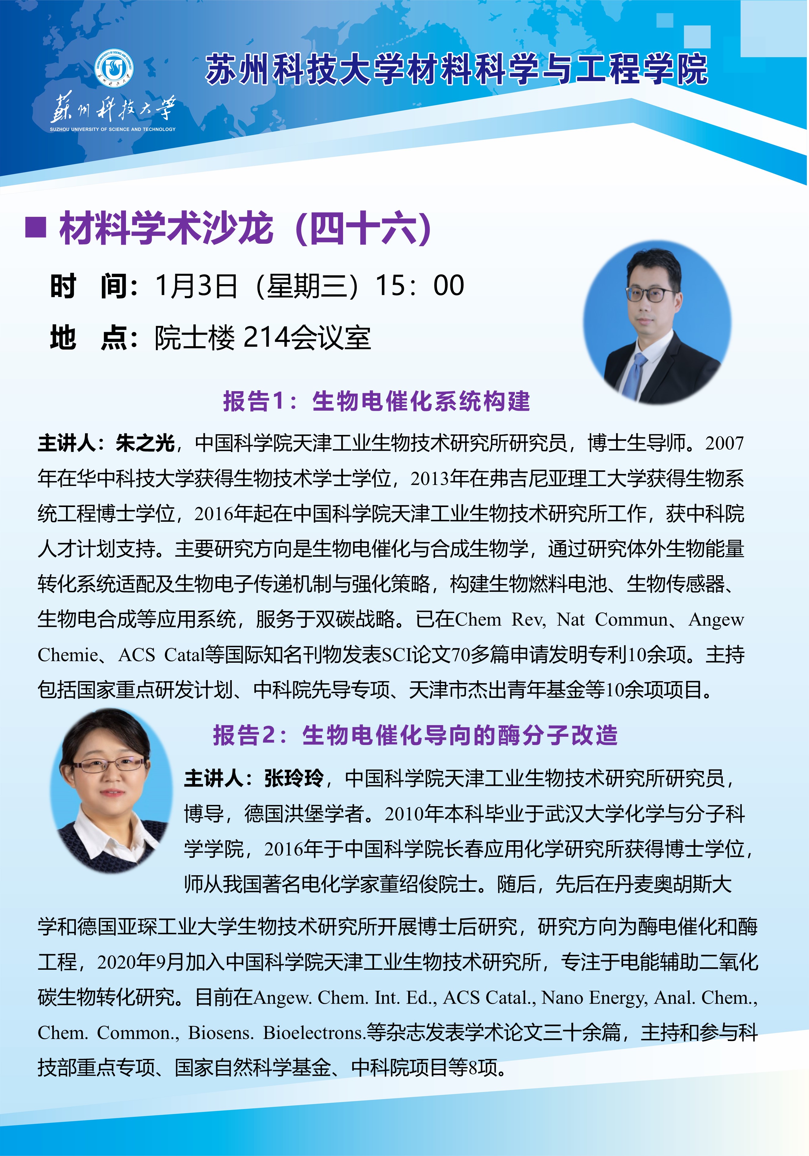 材料学术沙龙四十六:生物电催化系统构建/生物电催化导向的酶分子改造