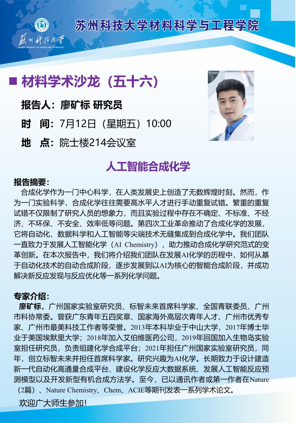 材料学术沙龙五十六:人工智能合成化学