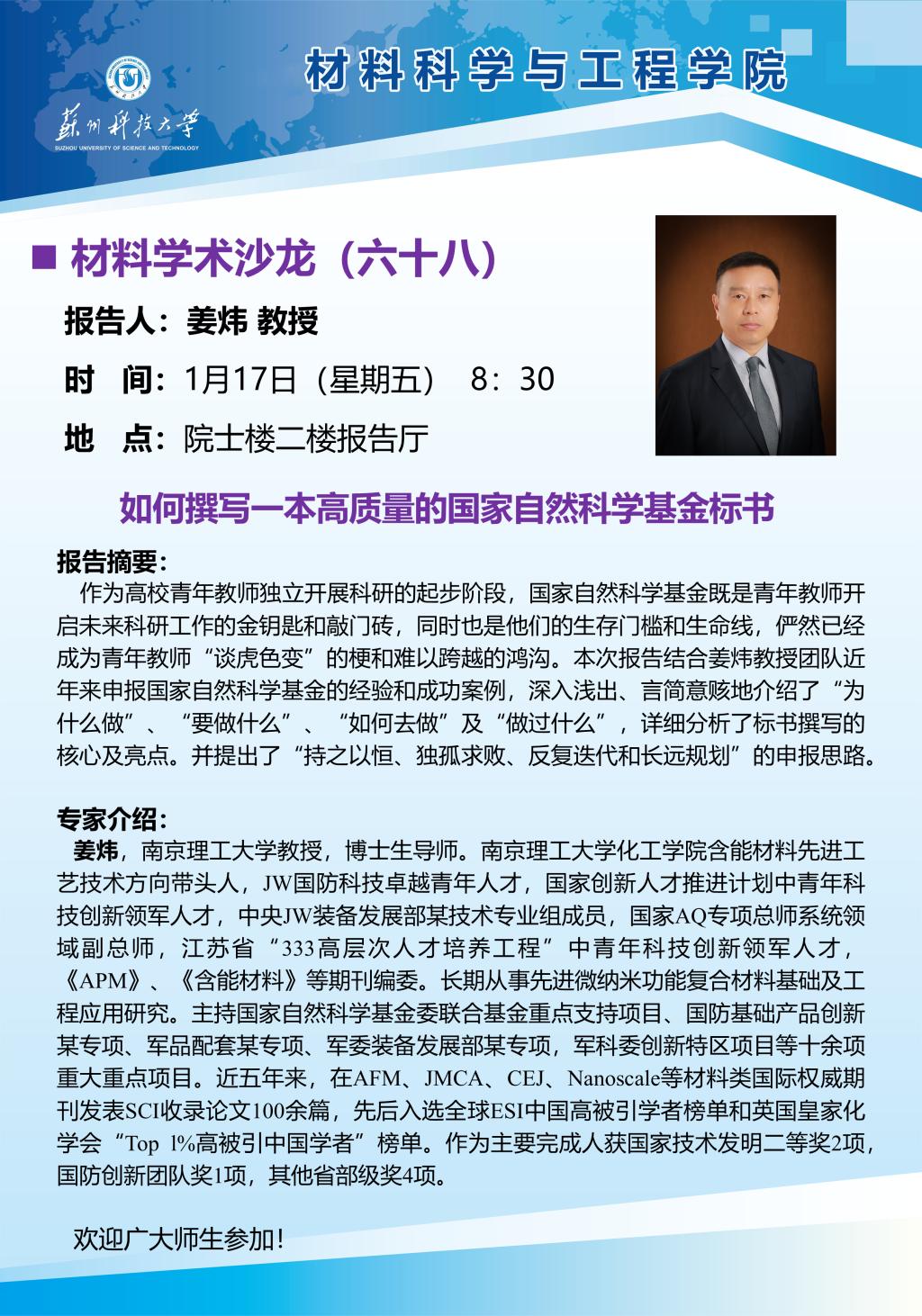 下一条:材料学术沙龙六十七:国家自然科学基金项目申报辅导会