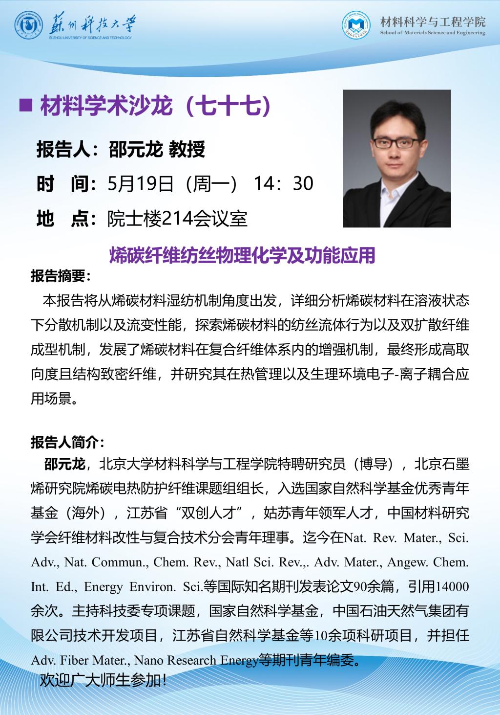材料学术沙龙七十七:烯碳纤维纺丝物理化学及功能应用