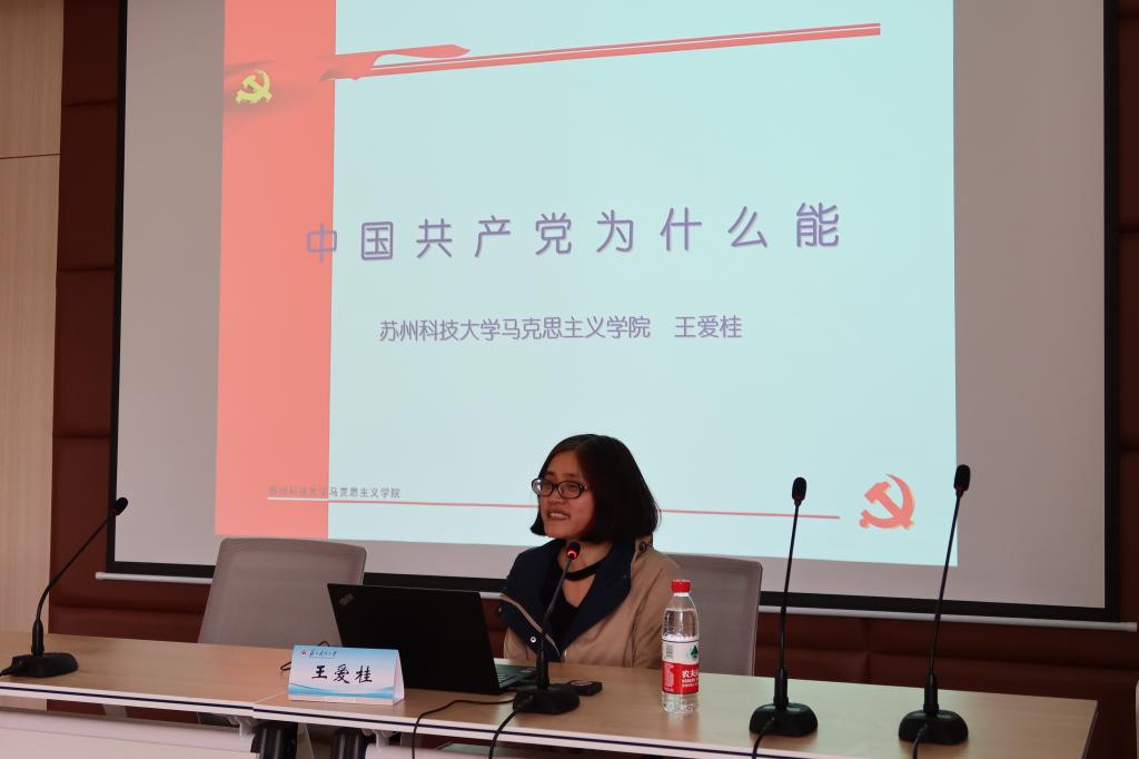 王爱桂老师结合时政从中国共产党为什么能建立新中国、中国共产党为什么能收拾好国民党留下的烂摊子、中国共产党为什么能得到群众支持、中国共产党为什么能取得改革开放巨大成就、中国共产党为什么能领导实现中华民族的伟大复兴几个方面回顾了我党领导全国人民站起来、富起来、强起来的百年历史。讲座视野开阔、内容丰富,具有很强的思想性、针对性和启发性。