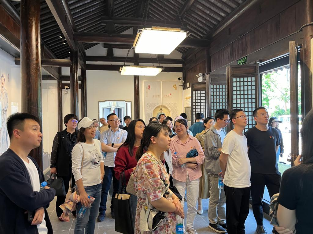 在基地解说员的引领下,党员们依次参观了“冯梦龙故居”、“冯梦龙纪念馆”、“冯梦龙书院”等场馆,并与福建寿宁县实时连线,远程听取了冯梦龙在寿宁修建的戴清亭和东坝的介绍。通过观看纪录短片和实物展品,详细地学习了冯梦龙文学、戏曲、艺术作品及廉政勤政、亲民爱民的事迹,深切感受到冯梦龙一生秉承“勤、公、实、廉”的为官之道,廉洁为民,敬业务实的精神。党员们表示,一定要以先贤为镜、以史为鉴、严于律己,在育人工作中积极践行廉洁文化。